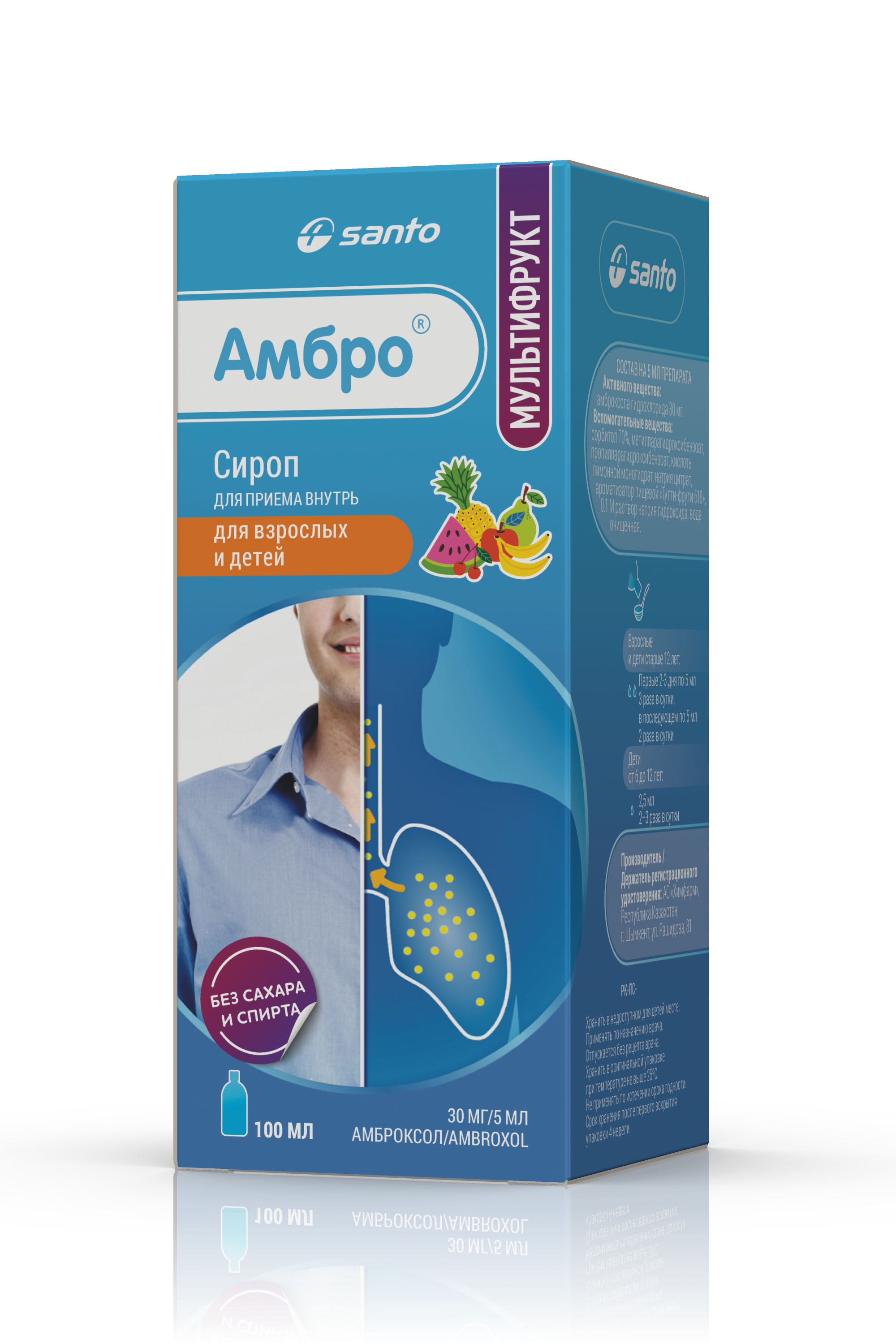 Амбро Мультифрукт, шәрбат 15 мг/5 мл және 30 мг/5 мл, 100 мл