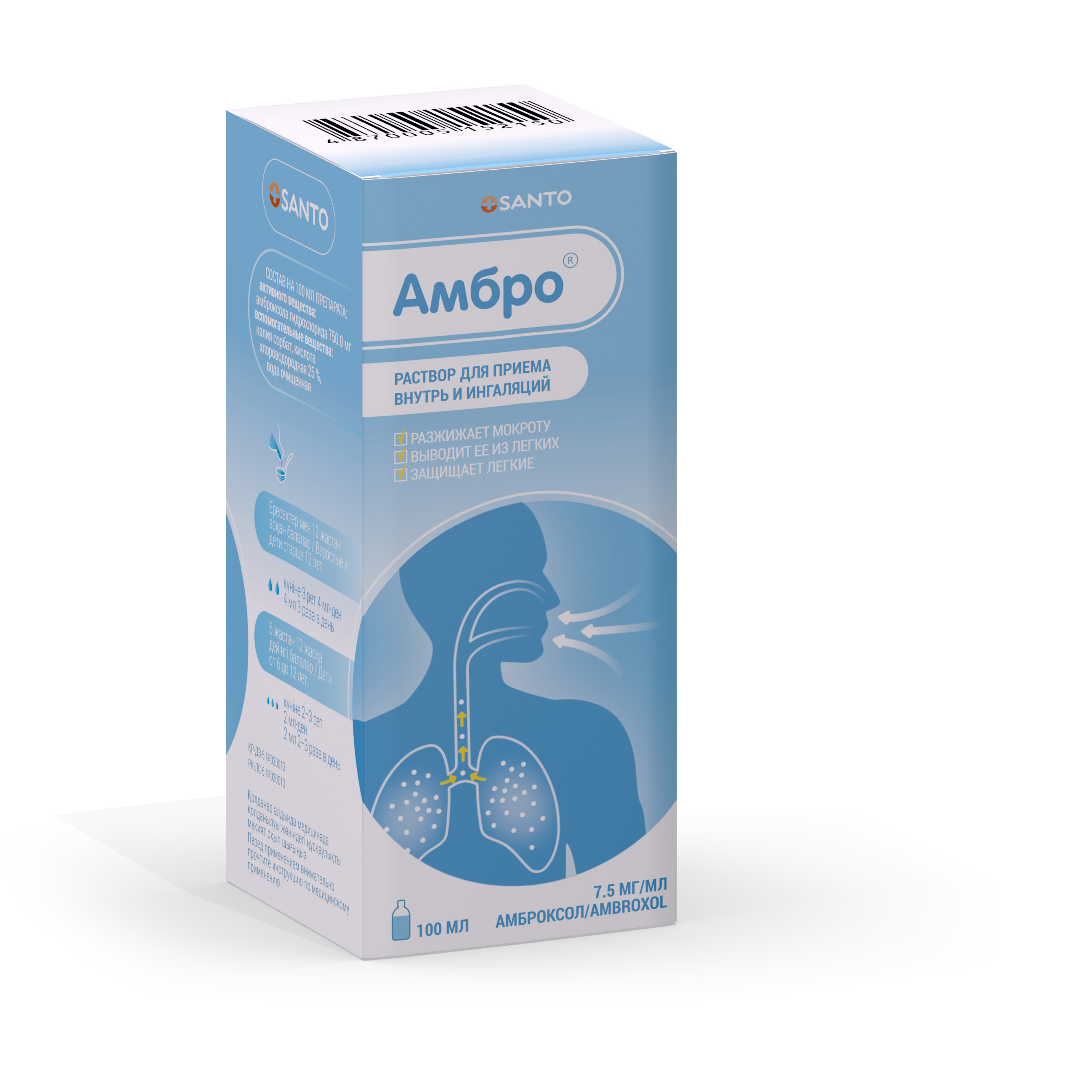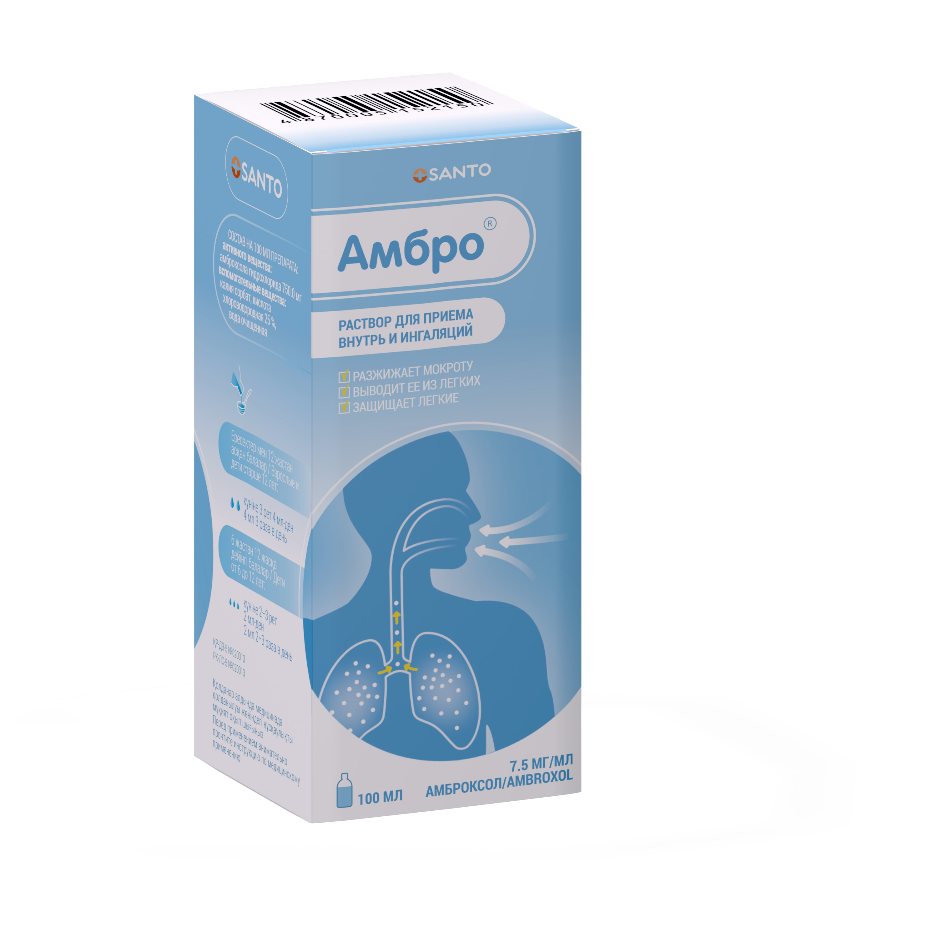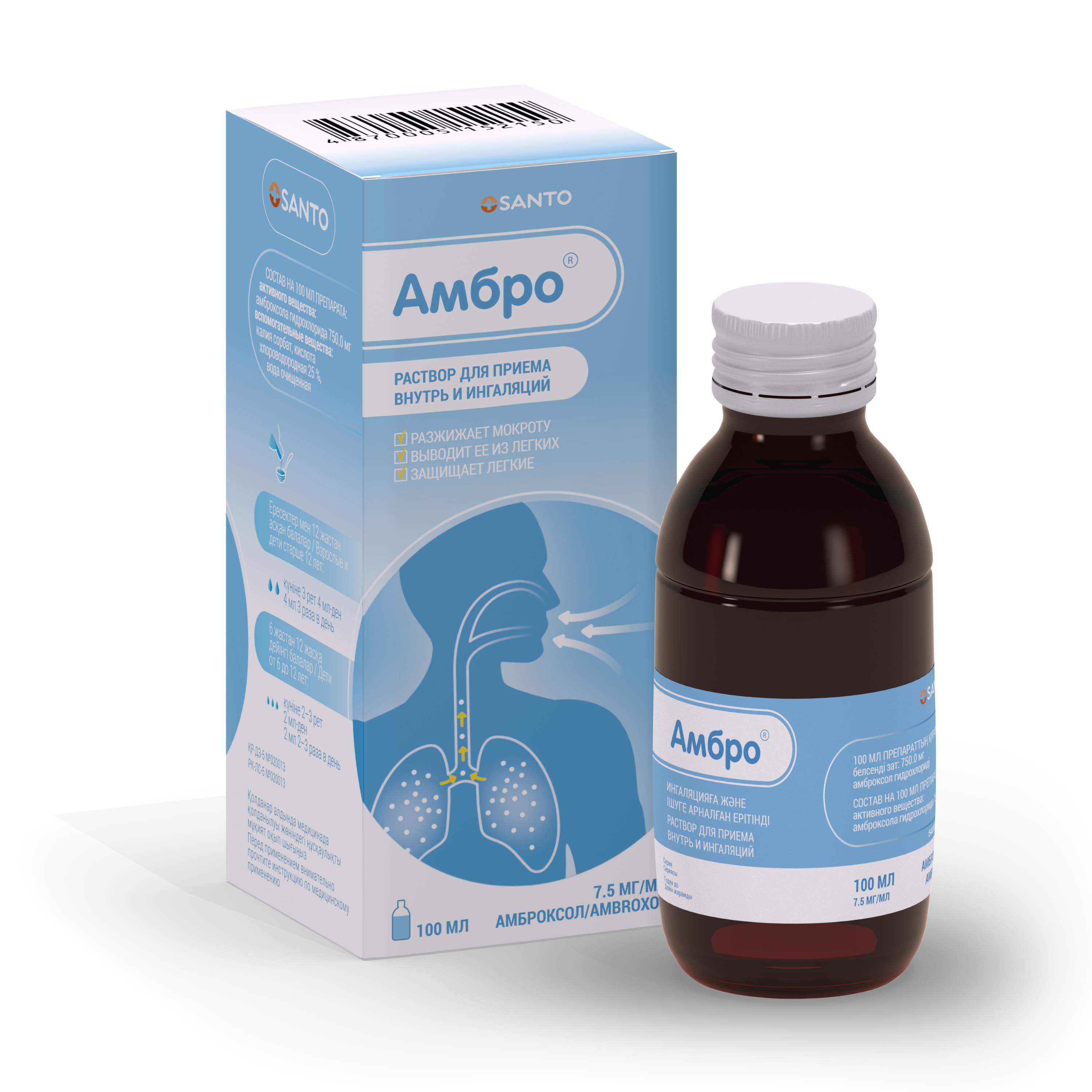 Амбро, 7.5 мг/мл, ингаляцияға және ішуге арналған ерітінді, 100 мл