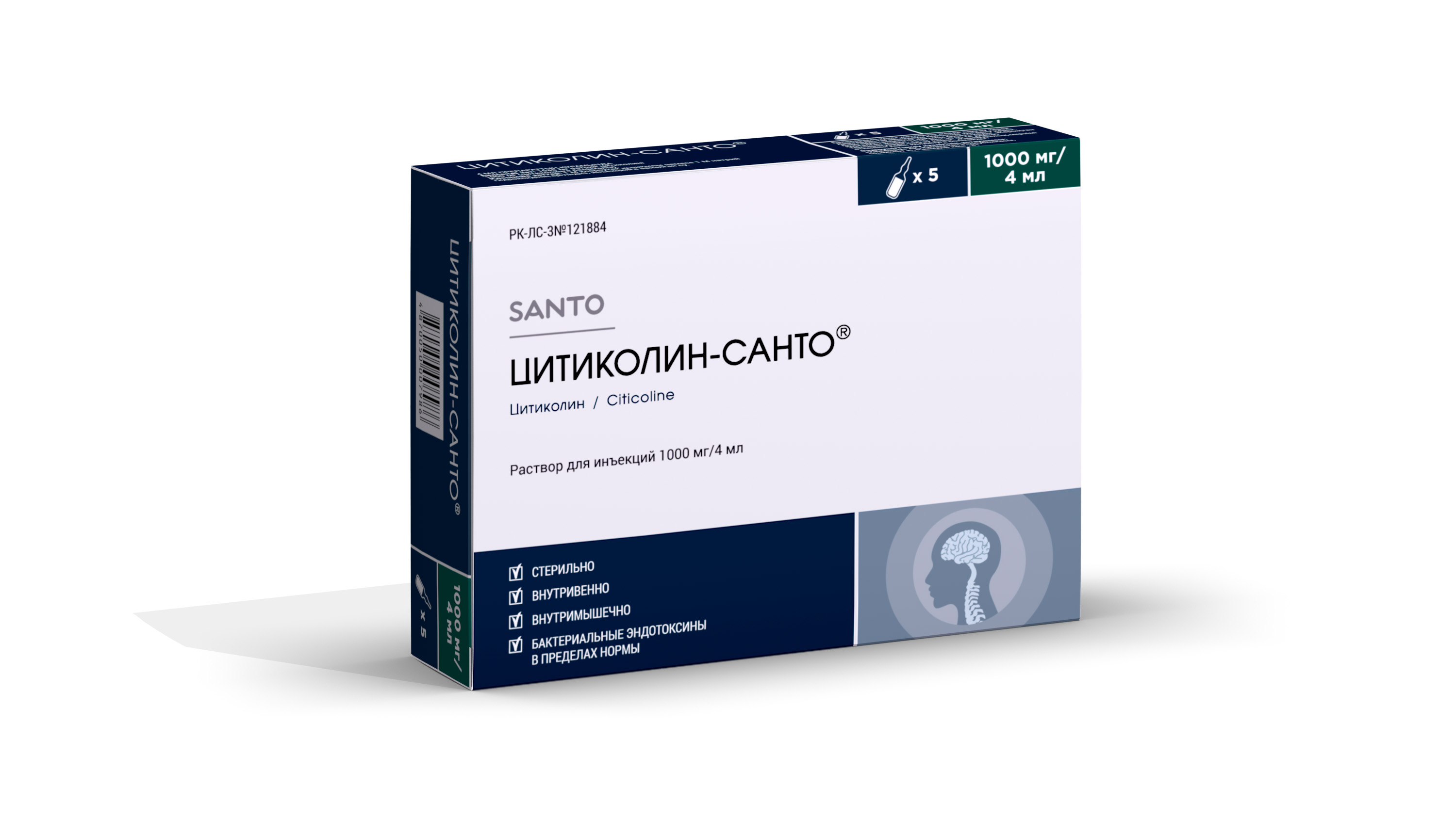1 или 2 контурные ячейковые упаковки дозировкой 1000 мг/4 мл вместе с утвержденной инструкцией по медицинскому применению на казахском и русском языках помещают в пачку из картона.