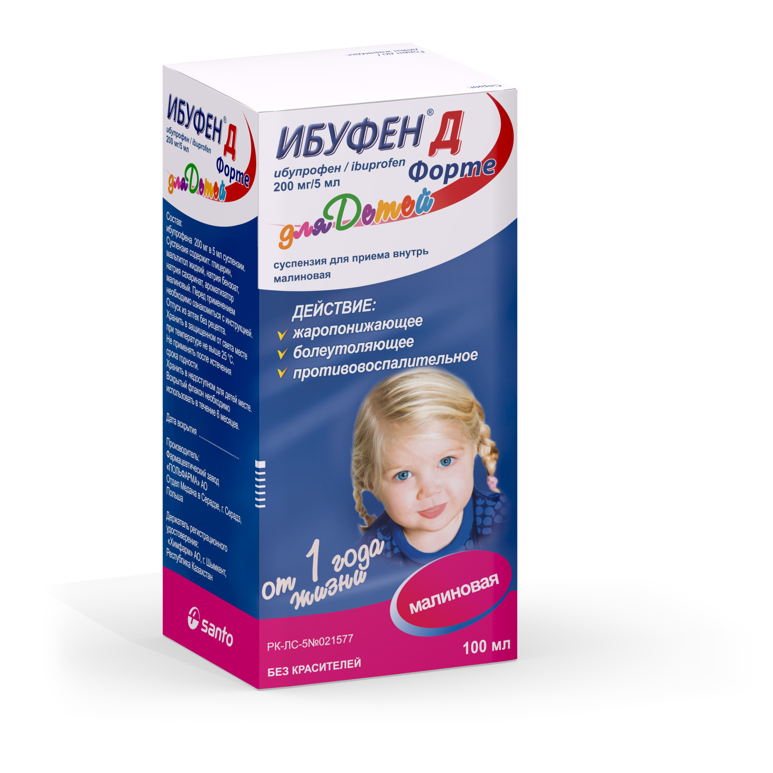 ИБУФЕН® Д Форте Малина (Ибупрофен) 200 мг/5 мл 100 мл суспензия